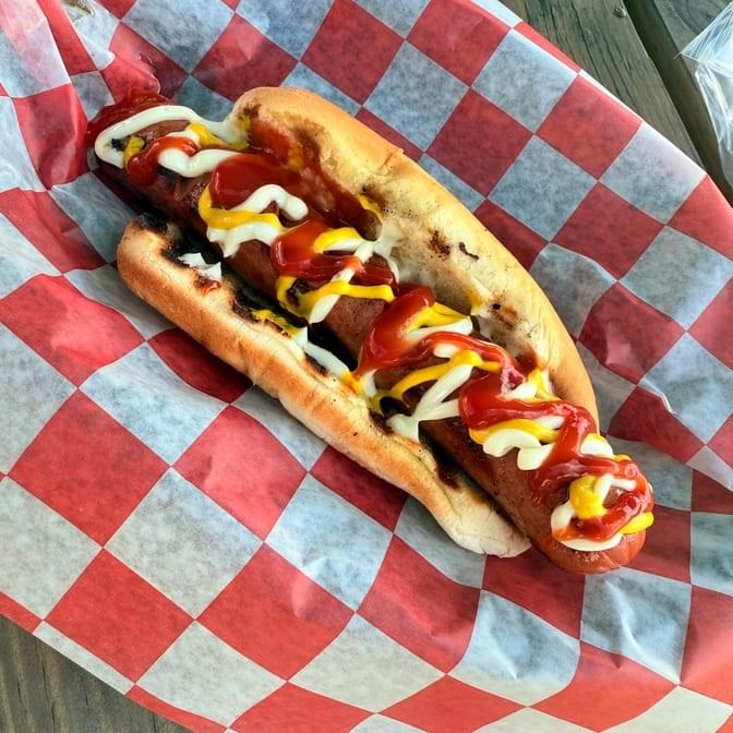 A jumbo all-beef hot dog grilled to perfection on a toasted bun. Comes with Ketchup, Mustard, and Mayo. Ask for relish