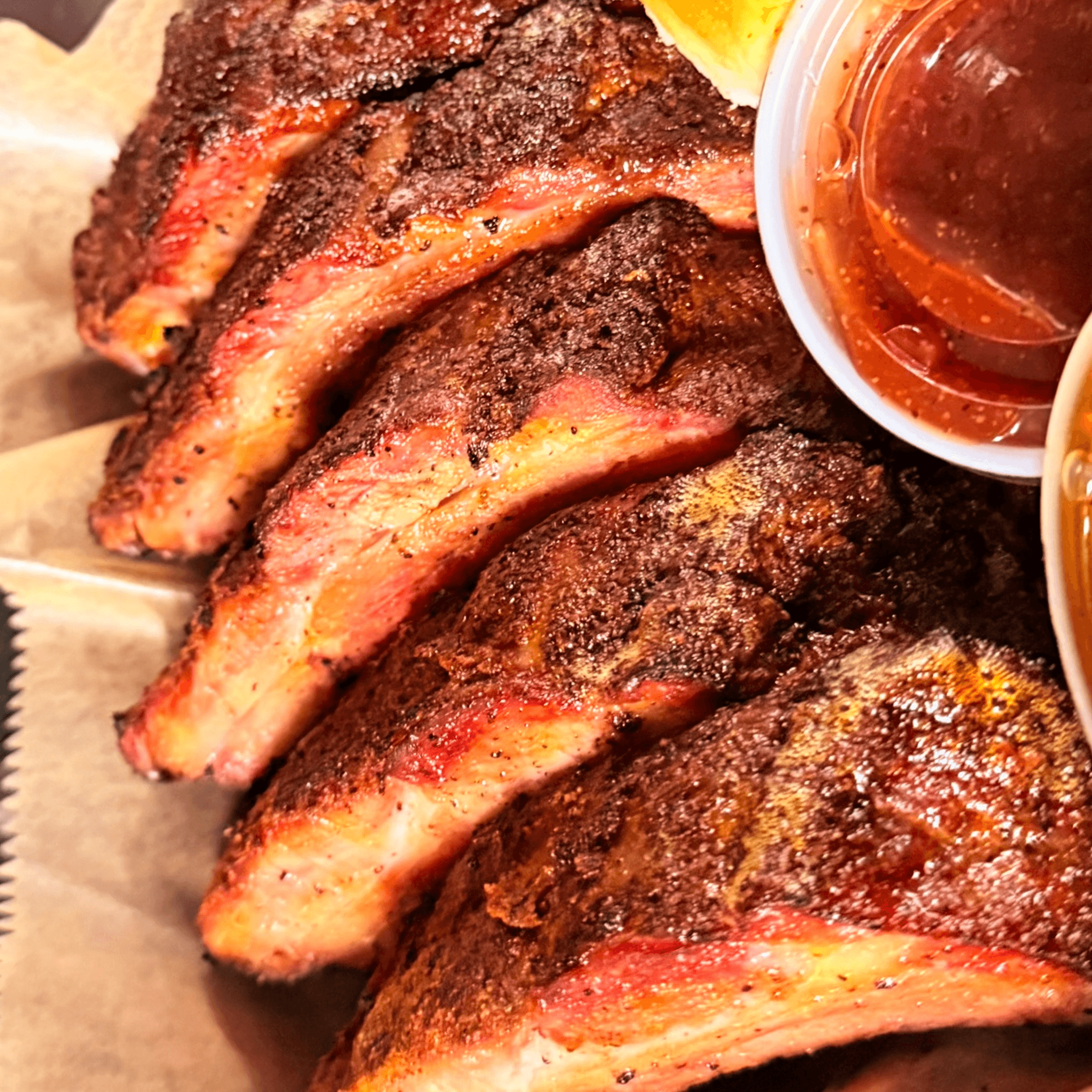 Baby Back ribs seasoned with our house rub and smoked. Finished on the grill and drizzled with our house BBQ sauce. Comes with choice of Side and drink