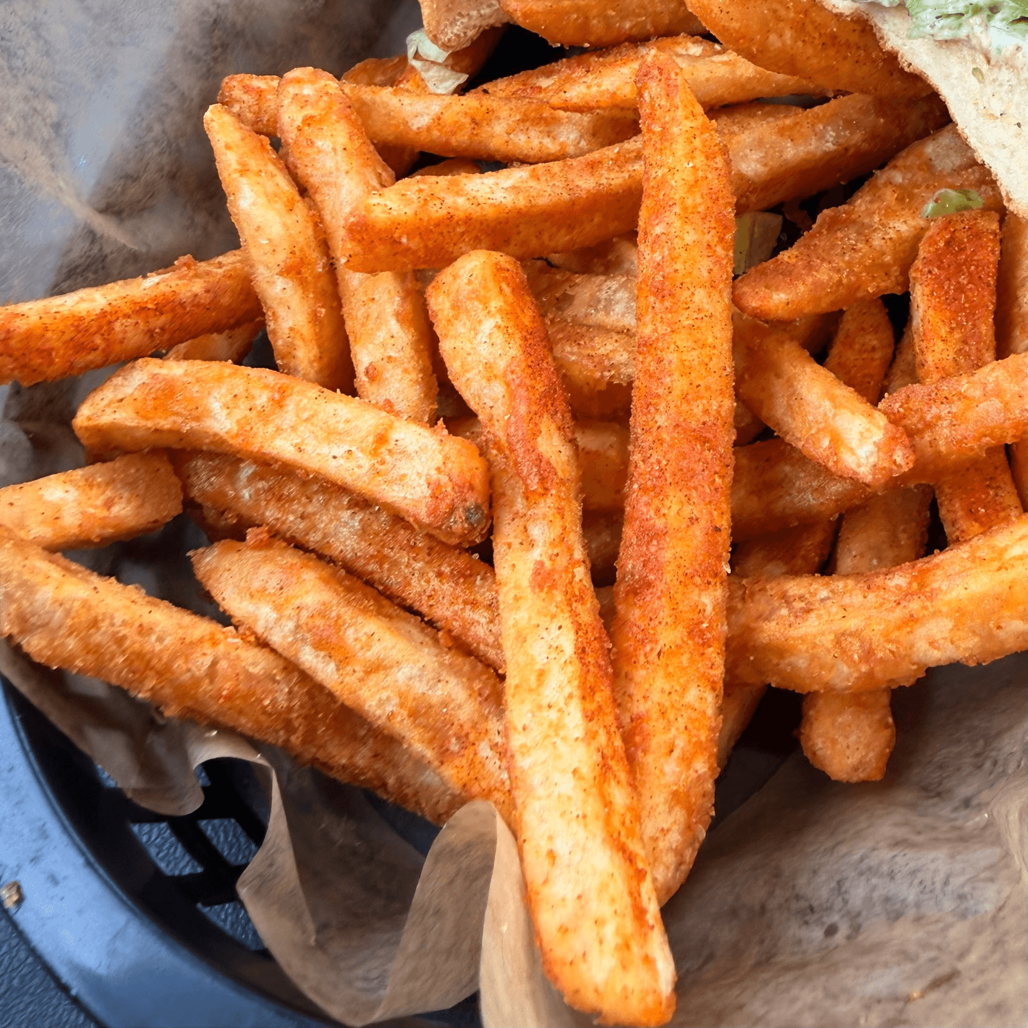 Our slow smoked brisket drizzled with house made hot Honey on a toasted brioche bun with onion crisps and cheddar cheese
